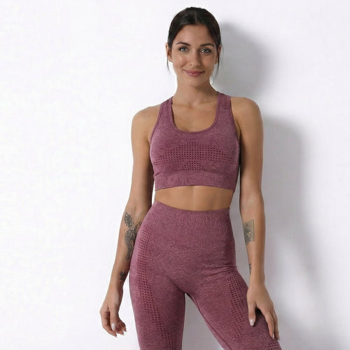 Conjunto de Fitness de Yoga de 2 peças, Calções Respiráveis de Levantamento de Anca e Sutiã com Costura Oca para Mulheres